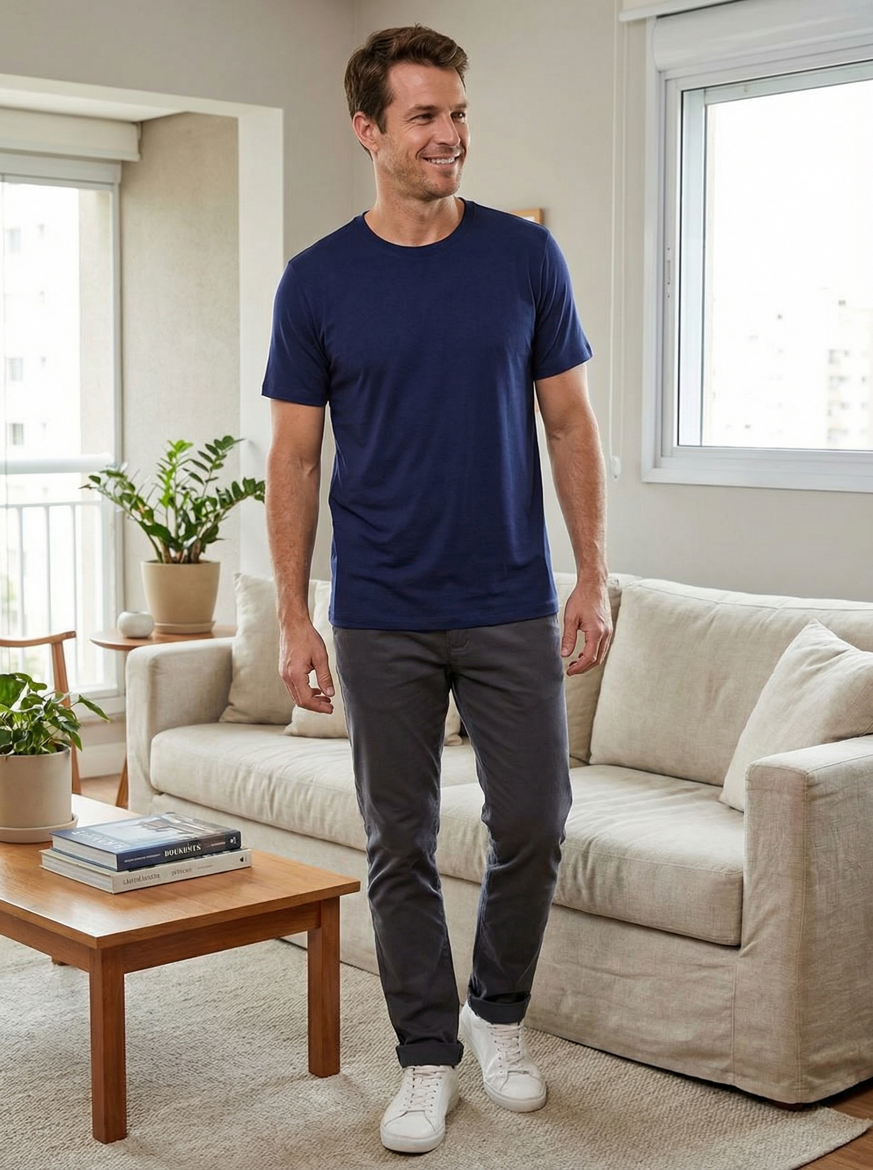 Zero Ferro de Passar: Tecnologia Non-Iron. O próprio calor do seu corpo ajuda a manter as fibras alinhadas. Saia de casa impecável e chegue ao fim do dia sem um vinco sequer.